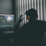 Person wearing virtual reality headset engaged in immersive experience